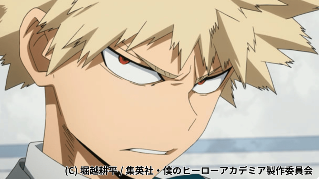 He is Izuku Midoriya’s childhood friend and a constant rival who provides stimulation. He has been a bossy kid since childhood, expresses his emotions directly and intensely, and often throws those around him around. He passed the UA High School Hero Course at the top of his class and possesses almost all the qualities necessary for a hero, such as intelligence, physical strength, and combat ability (except for popularity).