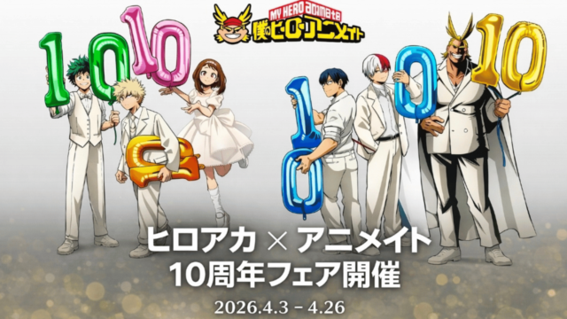 イベント情報 【2026年4月3日開催】ヒロアカ10周年スタートダッシュフェア|アニメイトで特典カード配布&限定ショッパー登場 2026年3月12日 dr.lycopene 参考:アニメイト公式HP アニメ『僕のヒーローアカデミア』の放送10周年を記念した「スタートダッシュフェア」が、全国のアニメイトおよ …