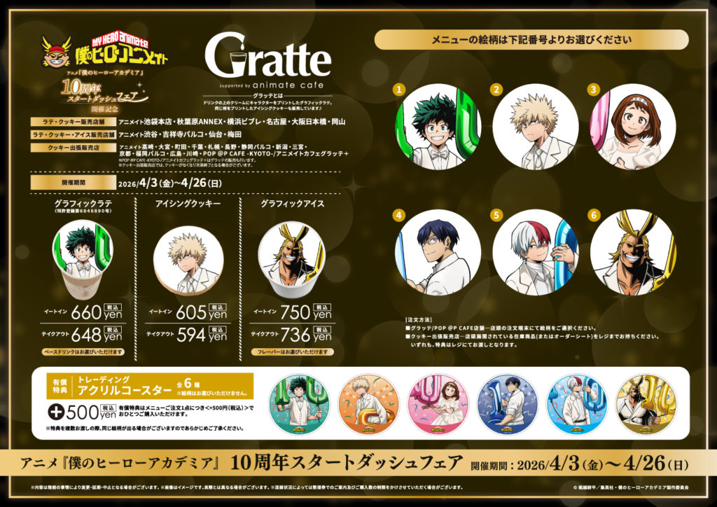 アニメ『僕のヒーローアカデミア』の放送10周年を記念した「スタートダッシュフェア」が、全国のアニメイトおよびアニメイト通販で開催されることが発表されました。